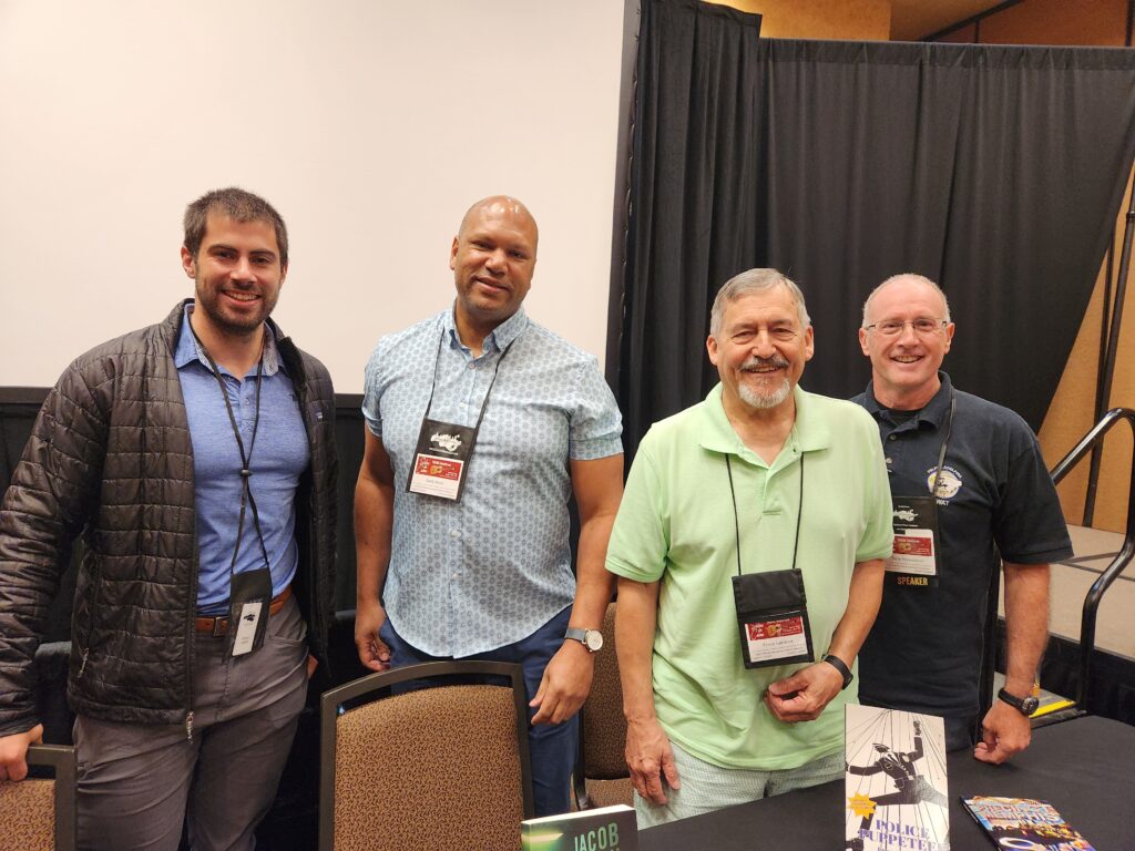 Attended the 2025 Killer Nashville Writers Conference in Franklin, TN, just outside of Nashville from August 22-25. My 5th time attending this mid-sized but very enlightening Con. Had the pleasure of sitting on the Law Enforcement in fiction panel (pictured with fellow panelists: (left to right) small-town Oregon cop, me, retired Memphis PD cop, and retired FBI agent. Also sat on the military and horror panels. Attended many others, most notably the agent/author relationship and memoir panels, two especially relevant subjects with my current writing project.